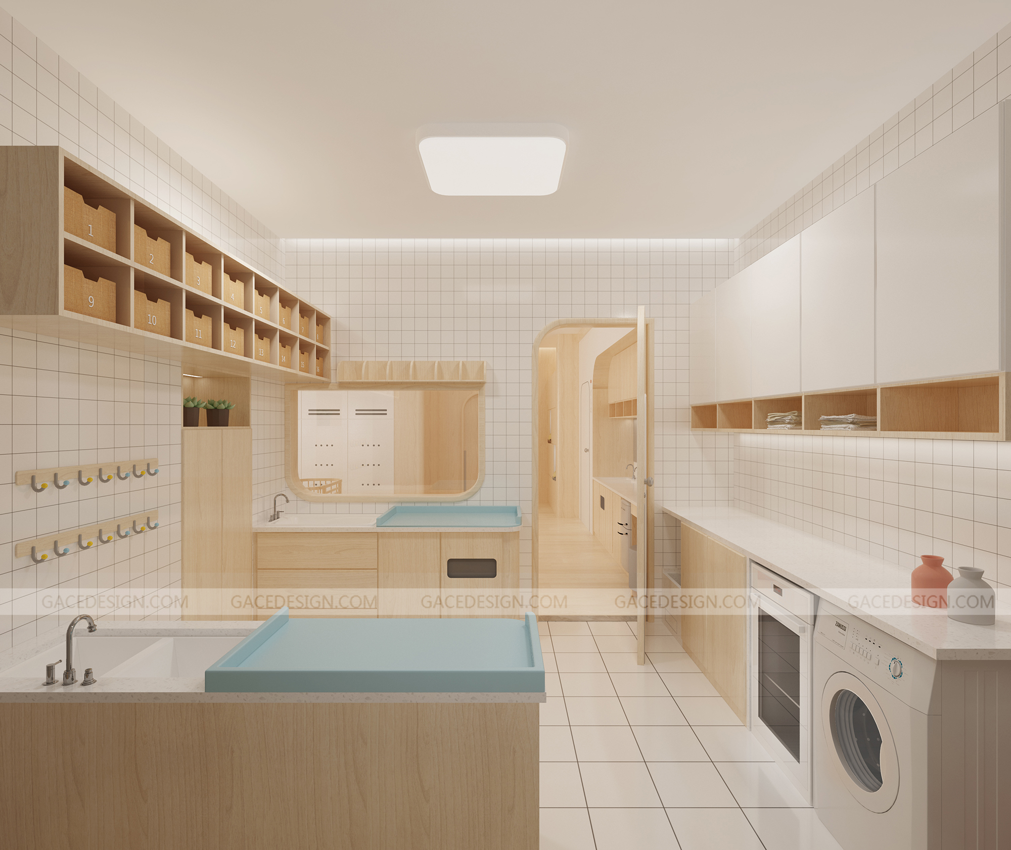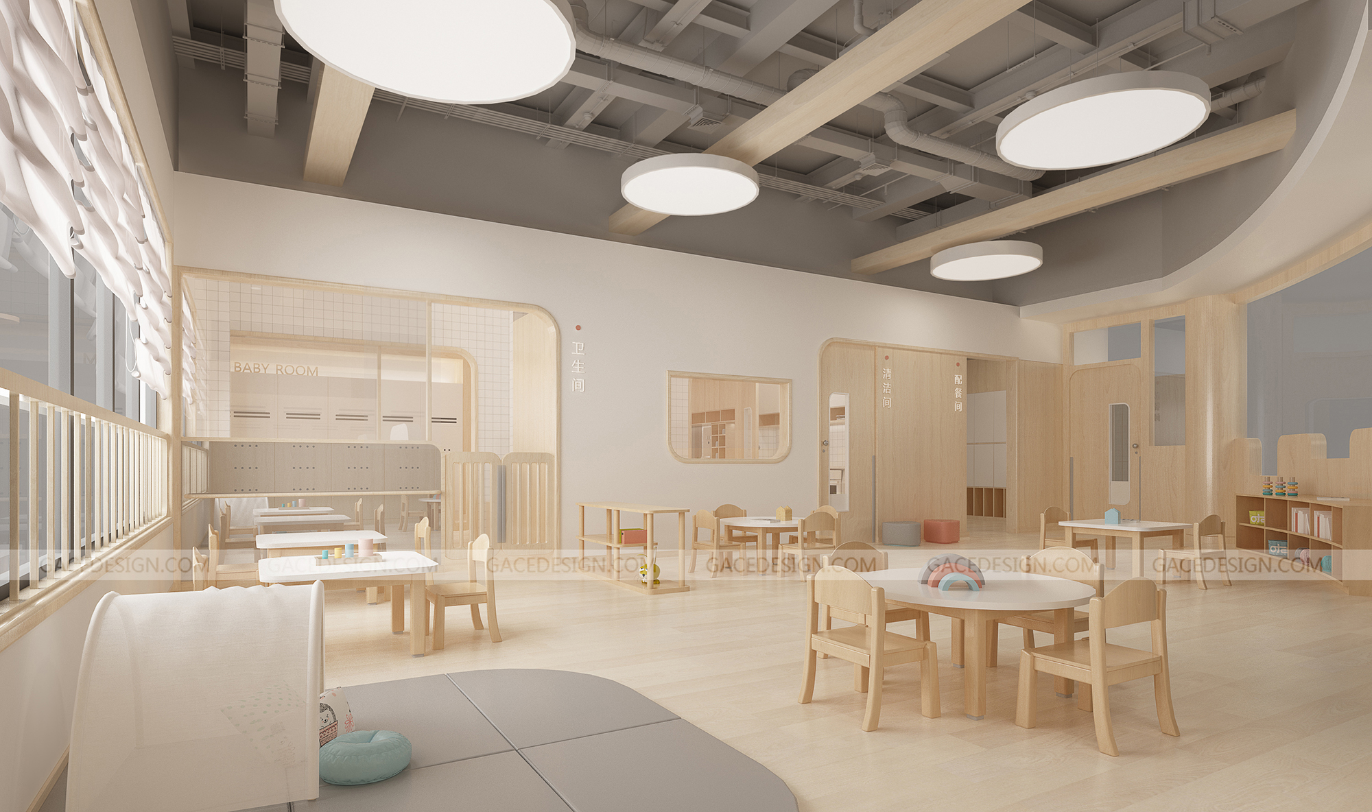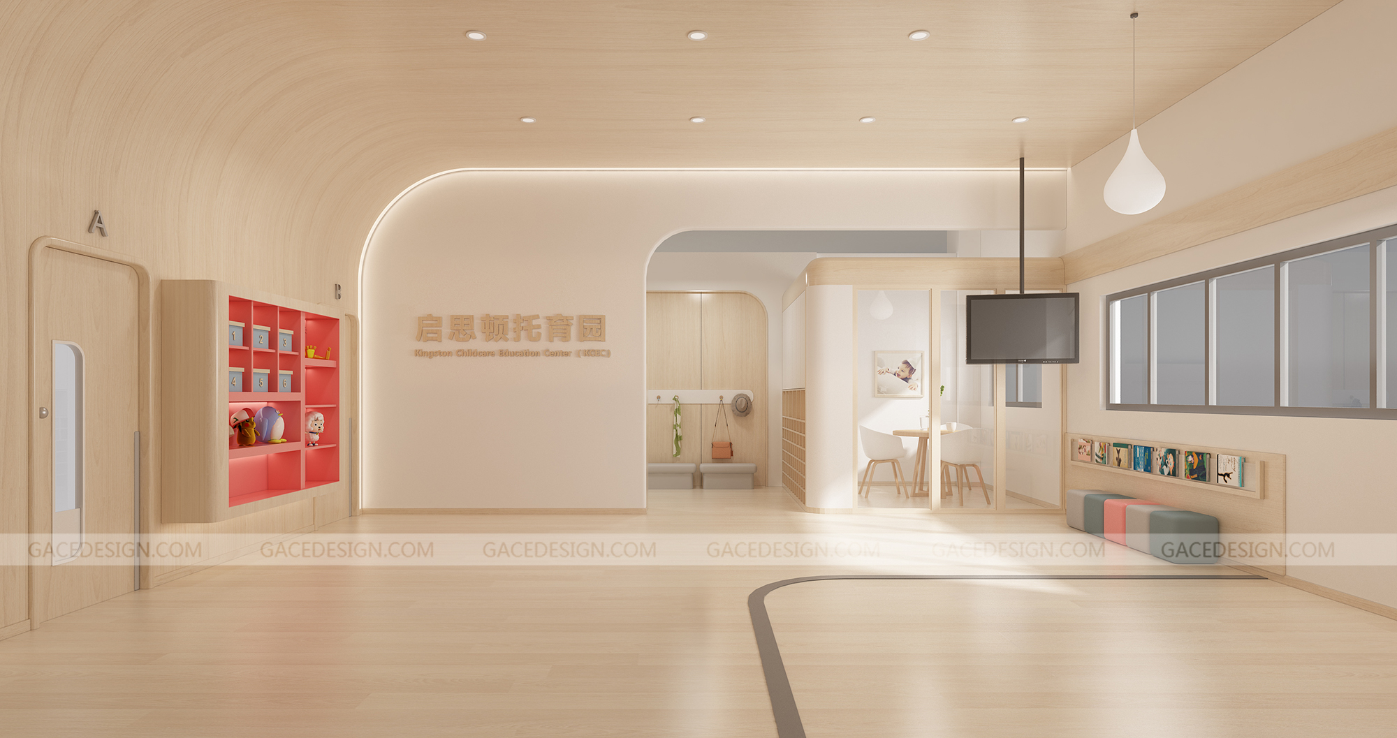 設(shè)計(jì)概括:這是我們幫啟思頓托育園設(shè)計(jì)的旗艦店,面積達(dá)到1000平以上,作為中山市高標(biāo)準(zhǔn)的示范性托育園,我們?cè)谠O(shè)計(jì)之前組織設(shè)計(jì)師進(jìn)行跟崗觀察,學(xué)習(xí)守護(hù)型嬰幼兒保育等系列保育書(shū)??紤]到保育員在操作層面上的便捷性,我們進(jìn)行了場(chǎng)景模擬,把操作層面所涉及的柜體以及路徑進(jìn)行了系統(tǒng)性整理??紤]到嬰幼兒在保育園的心理狀態(tài)以及發(fā)展心理學(xué)和空間敏感,我們定位這個(gè)項(xiàng)目是孩子的第二個(gè)家。是一家值得爸爸媽媽愿意托付的托育園。