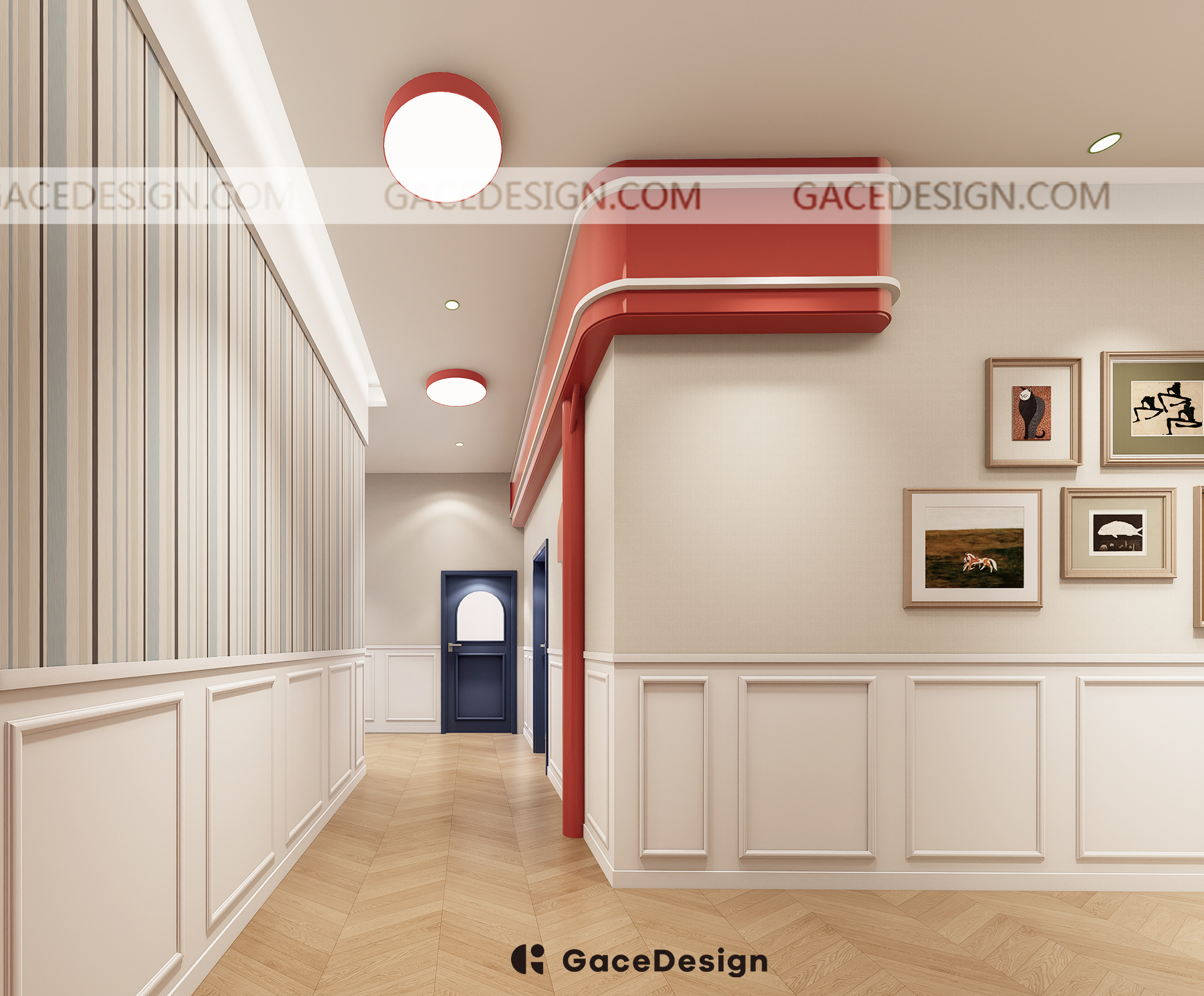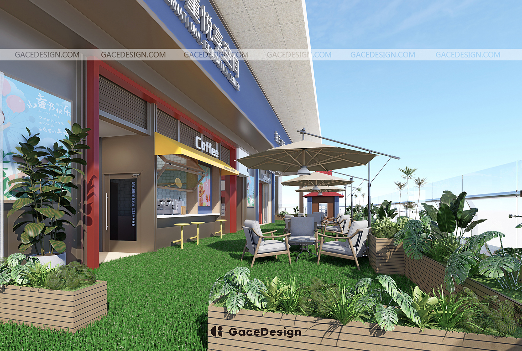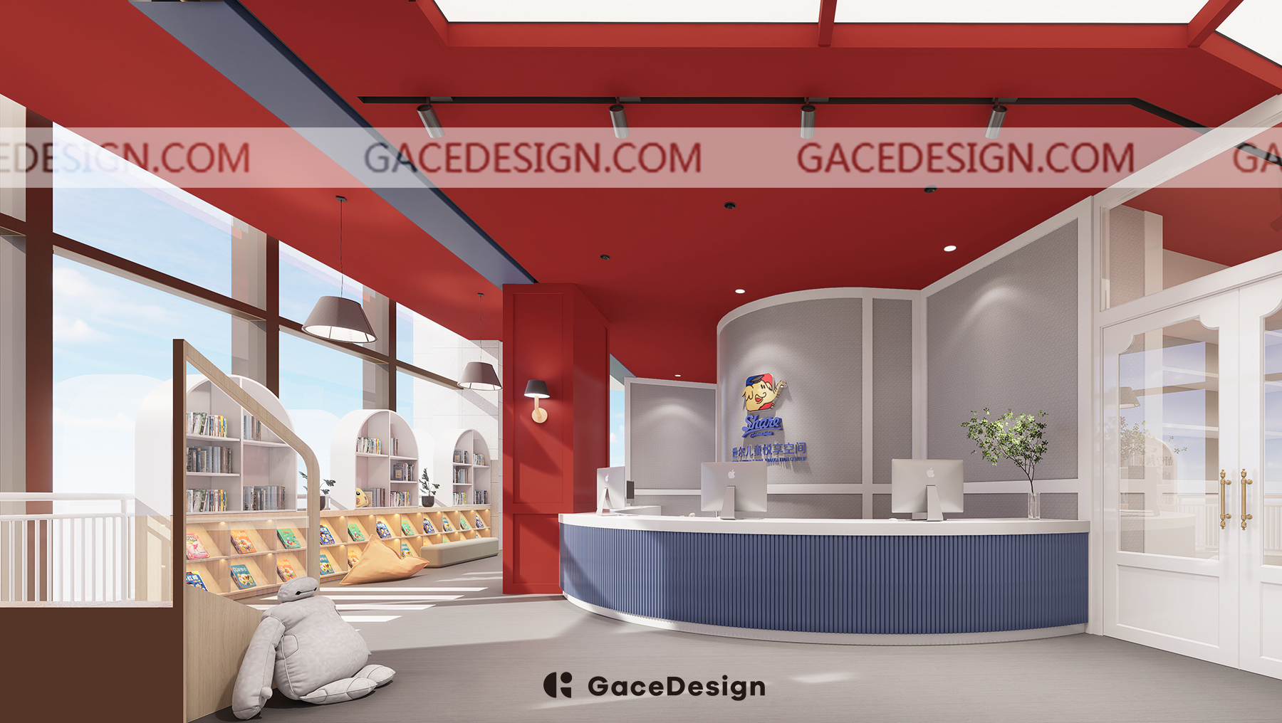 ?本次GaceDesign集合設(shè)計負(fù)責(zé)的是深圳龍華壹方天地校區(qū),室內(nèi)實際面積約440㎡,室外約207㎡,包含了6個教室。新的校區(qū)延續(xù)第一家校區(qū)的主色調(diào)“紅藍(lán)白”,強調(diào)沉浸式的美式氛圍。本次校區(qū)還特意設(shè)計了多個區(qū)角,分別有咖啡吧,多個休息區(qū)角公共空間。