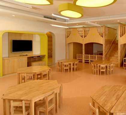 幼兒園設計幼兒園裝修中地板是重要的設計部分之一,幼兒園教室地面,可以做成PVC地板、亞麻地板、或者橡膠地板。亞麻地板和橡膠地板這樣的地面既適合幼兒在上面游戲學習,又好清理。