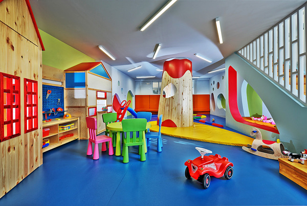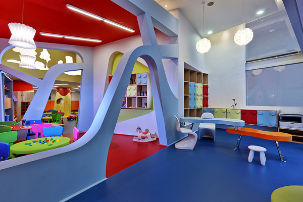 空間中各種柔和亮麗的色彩進(jìn)行搭配,保證了空間的活力同時又不會過于刺眼并且營造了歡快的氛圍。色彩也有助于小孩的識別能力和拼圖能力,給孩子的世界增添多姿多彩的樂趣。