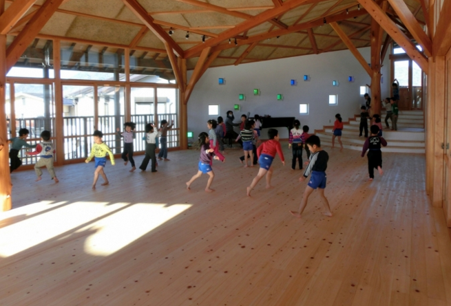 位于日本的美濃市在2012年建成一所木質托兒所建筑,這個幼兒園采用了Mokuiku的結構體系,反應了教育環境的一種手段同時也是反應了一個回收利用的社會觀念。美濃市托兒所的設計,反映了“本地生產、本地消費”的創新設計理念,在文化和環境上實現了可持續發展。