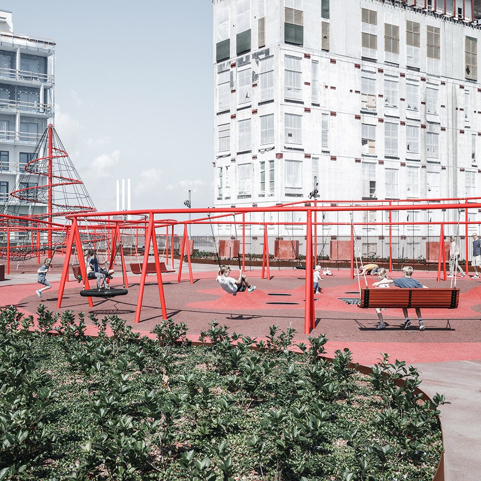在停車場(chǎng)的樓頂還可以俯瞰壯觀的哥本哈根港口全景,在時(shí)間充裕的情況下可以帶著自己的親屬、孩子一起到樓頂上了樂(lè)園玩耍,停車游憩兩不誤。