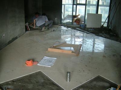 泥工在進場施工前兩天根據設計圖紙將所需材料進行初步估計,如砂子、紅磚、水泥的數量以及墻面、地面磚的面積。墻面、地面面積的計算方法是:墻面面積=(長+寬)×2×所貼瓷磚的高度(門窗折半);地面面積=長×寬+10%損耗。并注明廚房、主衛、次衛、陽臺墻面、地面的面積分別是多少,客、餐廳地面面積是多少,地漏有多少個等,開出具體的材料單交至項目經理,兩天內公司將材料配送到工地。