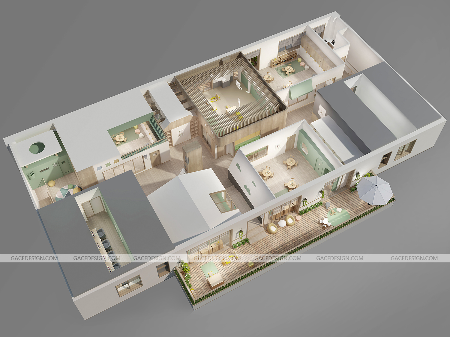 ① 輕快、活潑并有兒童建筑的特點(diǎn),是幼兒園開展活動的最佳場所,也是孩子們自由發(fā)展的快樂天堂。